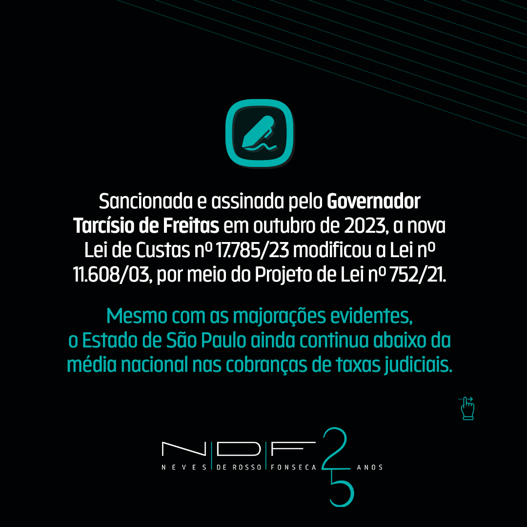 No último dia 03, entrou em vigor a nova lei e os novos valores para custas judiciais no Estado de São Paulo. A nova tabela, disponibilizada no Comunicado Conjunto nº 951/23, servirá como apoio para a verificação e apuração das taxas judiciárias. Seguindo o novo conceito, todos os valores de causa deveram ser atualizados, ocorrendo também majorações em algumas porcentagens e na quantidade de UFESP.